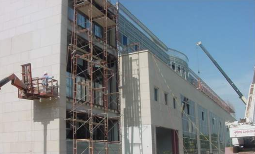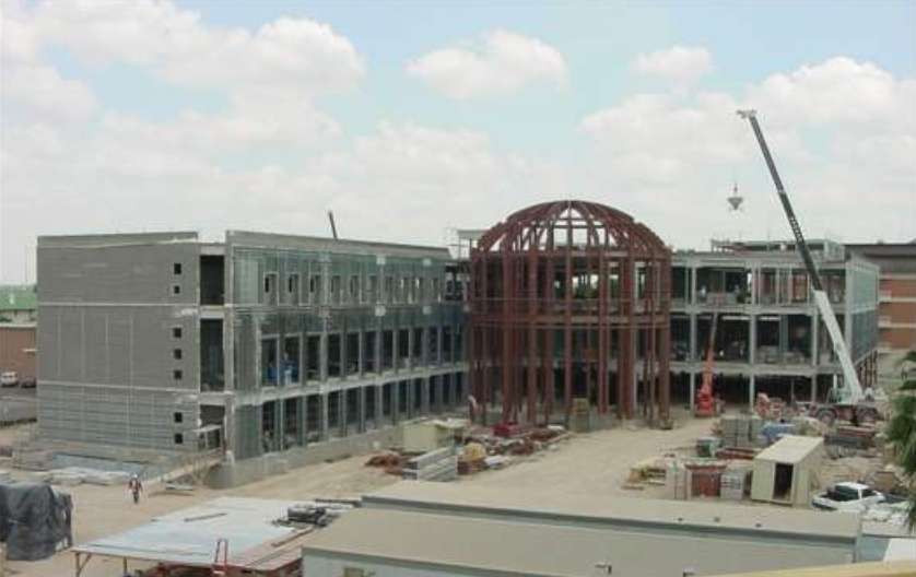 The building’s envelope consists primarily of limestone veneer. The interior finishes include stained cherry in the courtrooms, limestone, carpet and terrazzo flooring. As the building’s centerpiece, the Entry Rotunda is open to all three levels, wrapped with insulated curtain wall glazing and capped with a copper roof. The floor displays a terrazzo mural of the Rio Grande River.